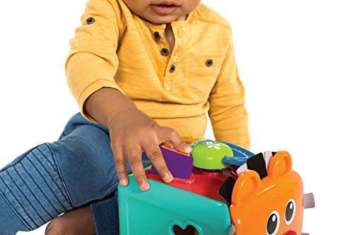 Sort eight colorful shapes in the Jungle Buddy Shape Sorters sides to teach early shape recognition and fine motor skills. Toy features fun details, including a spinning nose and fabric lion's mane. To release the shapes, turn the handle on top and the sides will open up. Easy and fun.Feature