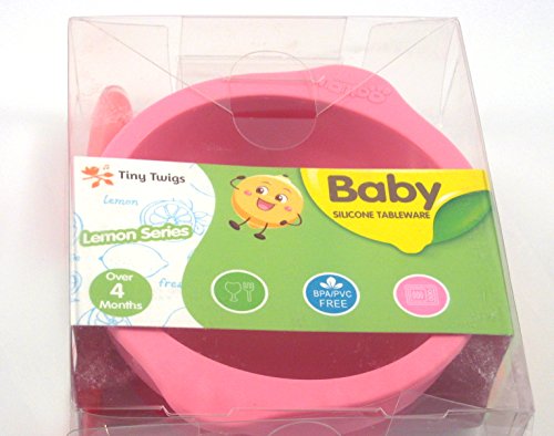 -. Feature : The Tiny Twigs bowl set includes a silicone suction bowl and a flexible soft tip silicone spoon of similar color / Material is 100% food grade silicone that is non-toxic, free of BPA, lead and Phthalates and is bacteria resistant making it safe and hygienic for your baby / The stay-put suction base helps prevent spills and avoid mess and the material is heat resistant, durable and unbreakable / Can be safely used in the microwave, freezer, in top rack of dishwasher and be boiled to sterilize / Holds 8 oz (225 ml) of food; can be used for infants 4 months and above
