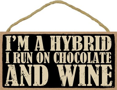 (SJT94115) I'm a Hybrid I run on Chocolate and Wine 5" x 10" wood sign plaque