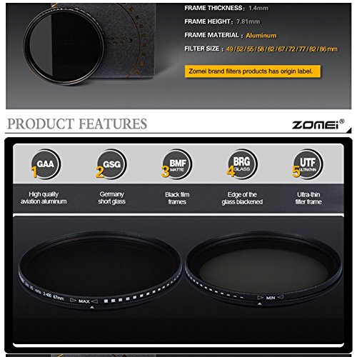 Allows for variable light reduction from between 2-8 stops; protect your lens from dust and scratches