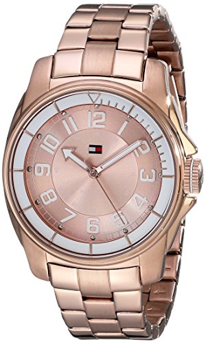 -. Binding : Watch -. Brand : Tommy Hilfiger -. Department : womens -. EAN : 0885997042833 -. Feature : Quartz movement / Sport inspired rose gold plated case with white bezel / White arabic numerals / Durable mineral crystal protects watch from scratches, / Water resistant to 99 feet (30 M): withstands rain and splashes of water, but not showering or submersion -. Label : Tommy Hilfiger -. Manufacturer : Tommy Hilfiger -. Model : 1781230 -. MPN : 1781230 -. PackageQuantity : 1 -. PartNumber : 1781230 -. ProductGroup : Watch -. ProductTypeName : WATCH -. Publisher : Tommy Hilfiger -. ReleaseDate : 2012-07-24 -. Studio : Tommy Hilfiger -. Title : Tommy Hilfiger Women's 1781230 Sport White Bezel Bracelet Watch -. UPC : 885997042833