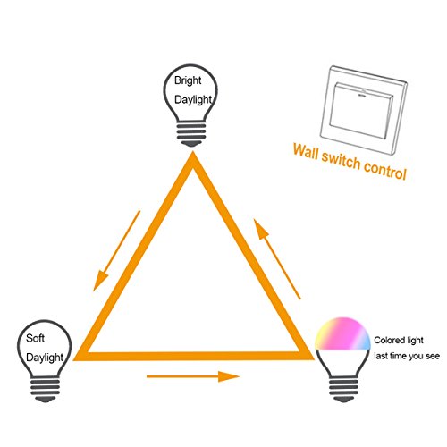 - [Timer switch ON/OFF]: The new additional function. Want to go to bed without turning the light off? timer switch off setting will turn off the light automatically when you fallen into sleep. Want the bulb turns on itself tomorrow night? Timer switch on Setting will turn it on the same time tomorrow night.( for more details, please see our listing description or user manual for reference)