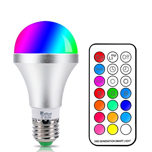 NetBoat 10W E27 RGBW LED Bulbs Dimmable,60 Watts Equivalent,12 Color Changing Light Bulb with IR Remote Control,Ideal Lighting for Home Decoration,Stage, Bar, Party