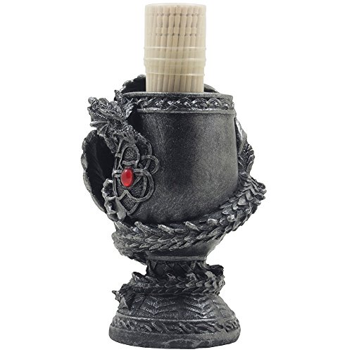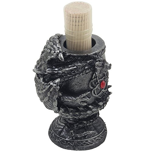 - Feature : A mythical winged dragon is perched on a bejeweled royal vase, its every wicked curve highlighted by a stunning pewter-look finish. - See full description below. / Dimensions: 3" x 3 1/8" x 5 3/8" high. (4 1/4" high without the included toothpicks) Weight: 0.7 lbs. / Individually hand-crafted from cold cast resin with wooden toothpicks in a clear plastic case. / Because our polyresin products are individually hand-crafted works of art, colors may vary slightly from what is pictured here. / Packaged in a decorative gift box. Toothpicks in a plastic case are included.