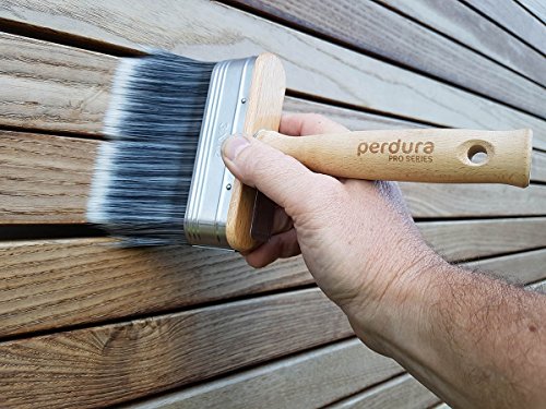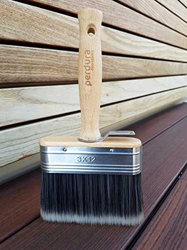 Perdura Pro Series Deck Stain - Paint Brush Applicator, wide 5 inch - Seal Finish and Coat Fast - Professional Quality Synthetic Bristle - Water and Oil based Coatings - Wood Concrete Stone Masonry.