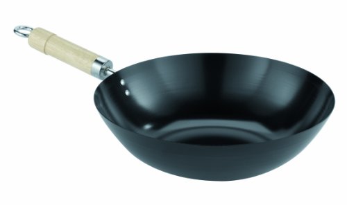 The Paderno World Cuisine 12" non-stick Chinese wok has a single wooden handle. Woks are most often used for stir frying, but can be used for other types of cooking as well. The long handle of the wok allows the cook to work with the food without the risk of injury from hot, splattering oil. The handle facilitates the tossing action for cooks used to using western sauté pans with similar style handles. The non-stick surface is PTFE and PFOA-free, ensuring it is healthyFeature