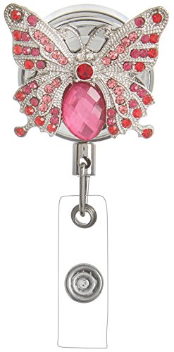 Studio : Napier Publisher : Napier Binding : Apparel Product Description Napier ID badge holder features a retractable reel, clip on design, vinyl strap to hold your ID and a rhinestone embellishedsilver tone butterfly. 1.5" retractable reel. 1.5" clear vinyl strap. Gift boxed. Metal. 0