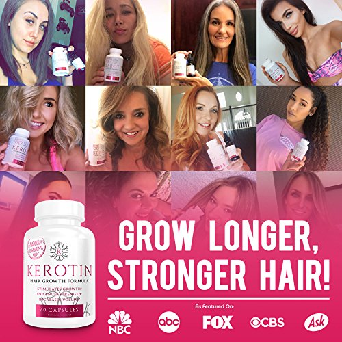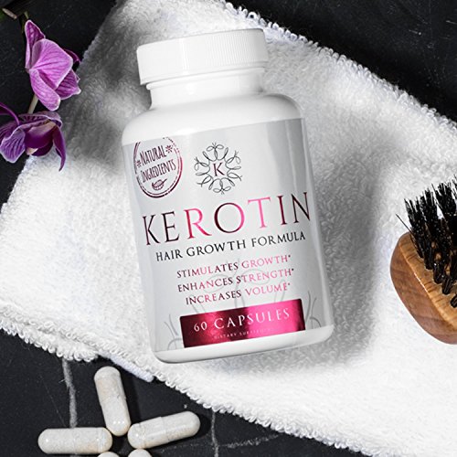 Kerotin Hair Growth Vitamins for Natural Longer, Stronger, Healthier Hair - Enriched with Biotin, Vitamin B, Folic Acid - Promotes Long, Frizz-Free, Keratin Rich Hair for All Hair Types - 60 Capsules