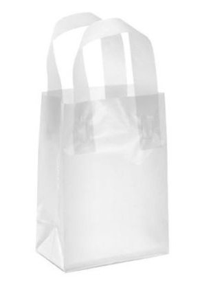 Frosted Plastic Shopper Gift Bags with Handle (5x3x7)- Quantity of 100 (Clear)