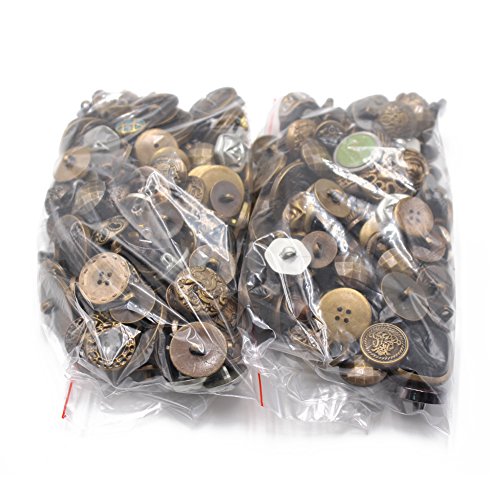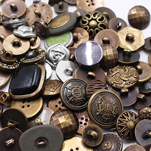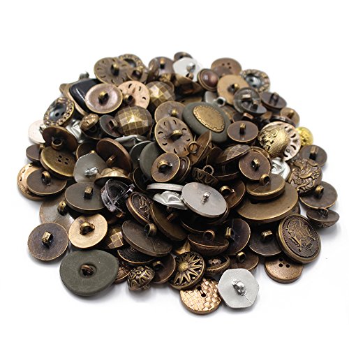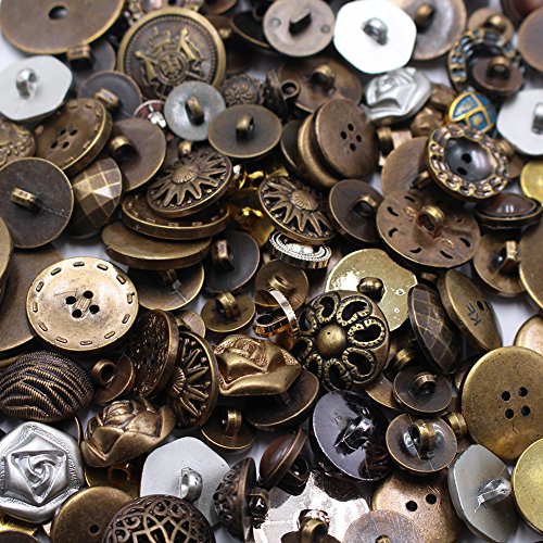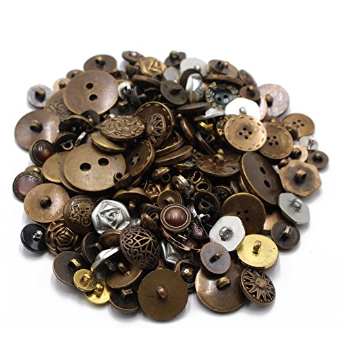 LAOZHOU 200 Gram Fancy & Decorative Assorted Sizes Flat & Shank Sewing & Craft Buttons Made of Metal & Plastic Elegant Random Metallic Detailed Shapes Design(Metal Button)