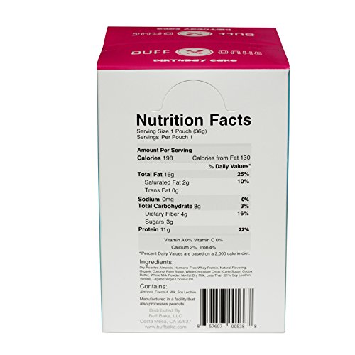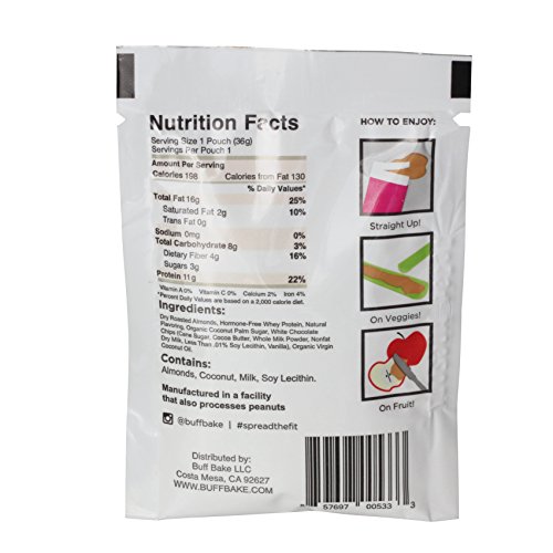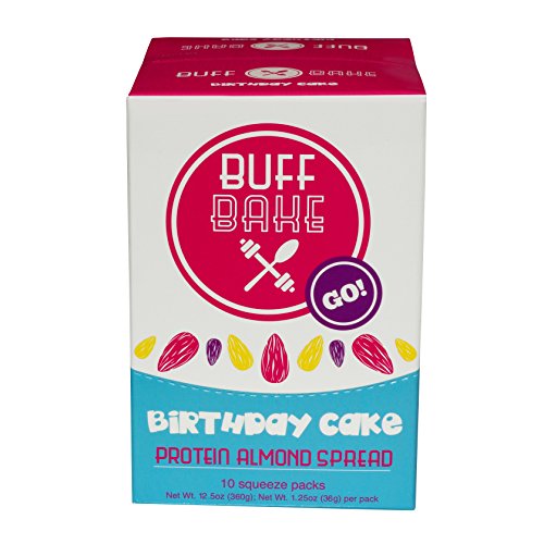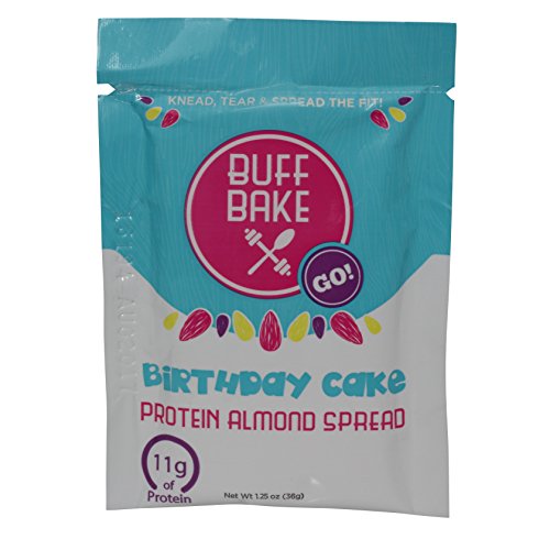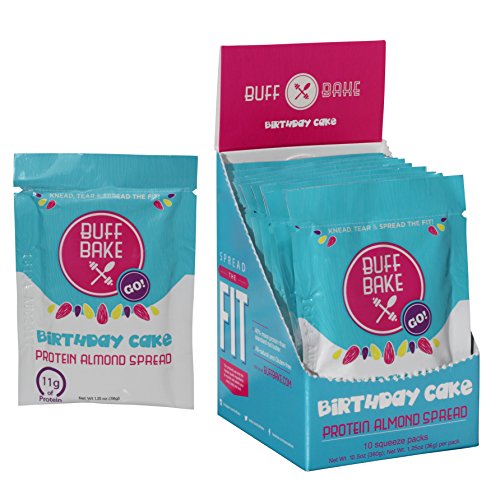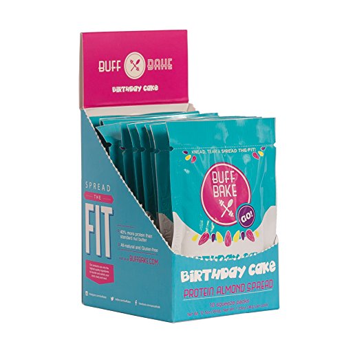 Buff Bake - GO! Pouches Protein Almond Spread - Birthday Cake - Chia & Flax - Pack of 10 Squeeze Pouches