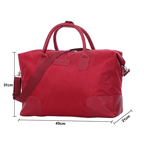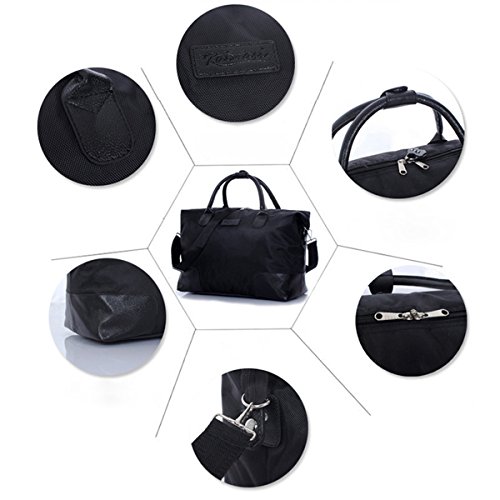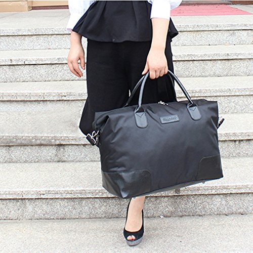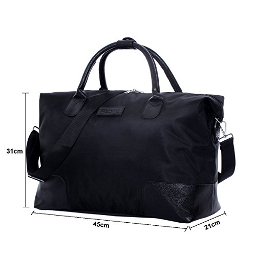 -. Feature : Color: Black, Material: Oxford + PU Leather, Lining material: Polyester / Dimension: 17.7"L x 12.2"H x 8.2" W / Occasion: The bag is ideal for travel, sports, fitness, shopping, camping, hiking or go to the beach. Perfect for an extra travel bag / Folding Design: When not in use, can be folded up into a smaller bag, easy to carry, any time can be used. Reasonable space design, fashionable appearance, it is a good aid of you when you are at home or go out for traveling / Guarantee: You are buying directly from the MANUFACTUER!Only offers 100% satisfaction Guranteed! we are committed to offering the best value to our customers.