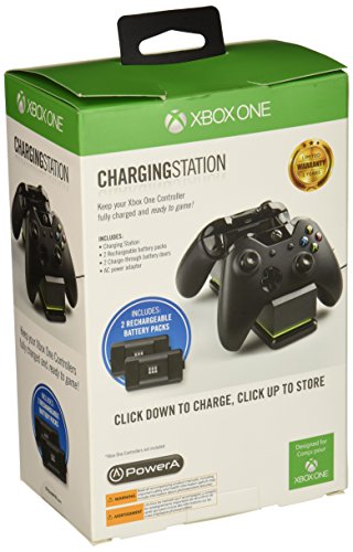-. Binding : Video Game -. Brand : BD&A -. EAN : 0617885013935 -. Feature : Officially licensed to charge the XBOX One Wireless Controller / Snap-down charging design / Eliminates the need for costly replacement batteries / Charges and Displays / Includes 2 Rechargeable batteries, 2 Charge-through battery doors and USB Charging Cable -. HardwarePlatform : xbox_one -. IsAdultProduct : 0 -. IsEligibleForTradeIn : 1 -. Label : POWER A -. Manufacturer : POWER A -. Model : CPFA114326-02 -. MPN : CPFA114326-02 -. OperatingSystem : Xbox One -. PackageQuantity : 1 -. PartNumber : CPFA114326-02 -. Platform : Xbox One -. ProductGroup : Video Games -. ProductTypeName : VIDEO_GAME_ACCESSORIES -. Publisher : POWER A -. ReleaseDate : 2016-01-14 -. Studio : POWER A -. Title : POWER A Charging Station with Elite Door - Xbox One -. UPC : 617885013935