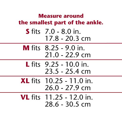 Measure around the smallest part of the ankle. Available Sizes: Small (7-8 Inches), Medium (8.25-9 Inches), Large (9.25-10 Inches), X-Large (10.25-11 Inches), and V-Large (11.25-12 Inches).