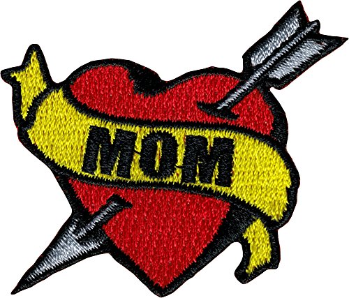 Tattoo Art Heart Arrow Name Embroidered Iron On Applique Patch - Mom