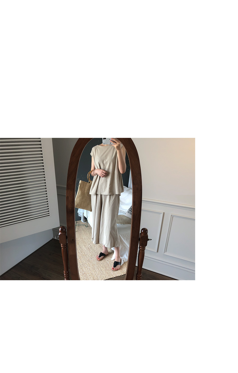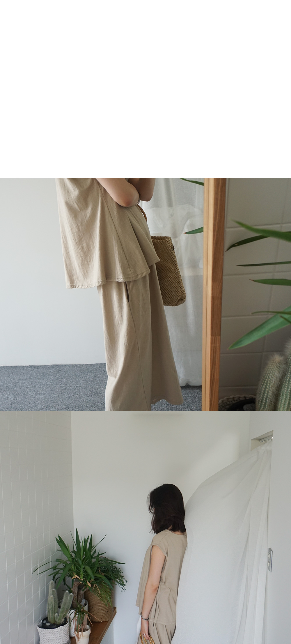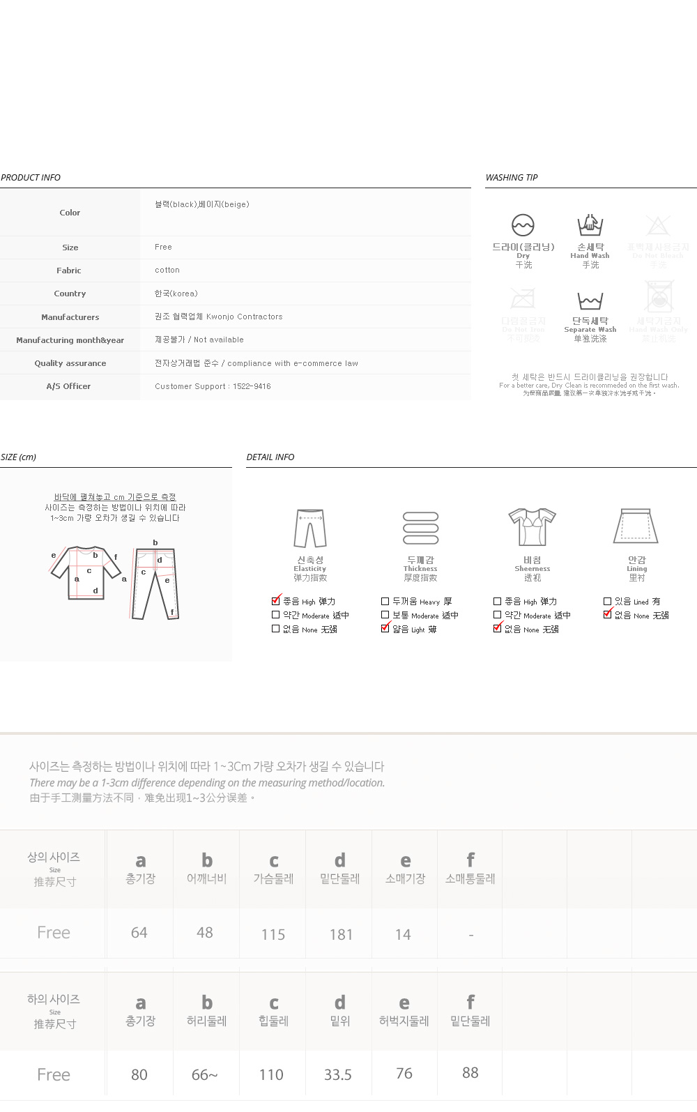 피팅 컬러와 사이즈는 베이지, Free 입니다