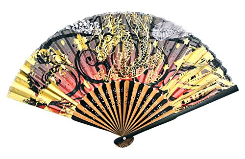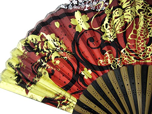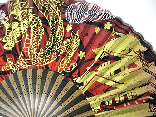 Japanese Folding Hand Fan: Dragon, Tiger, Castle