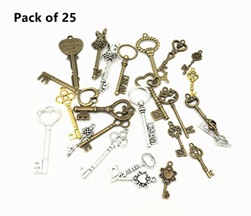 25pcs Mixed(Color&Style) Antique Skeleton Key Steampunk Charms Pendants Connectors for DIY Jewelry Making Accessories By Alimitopia