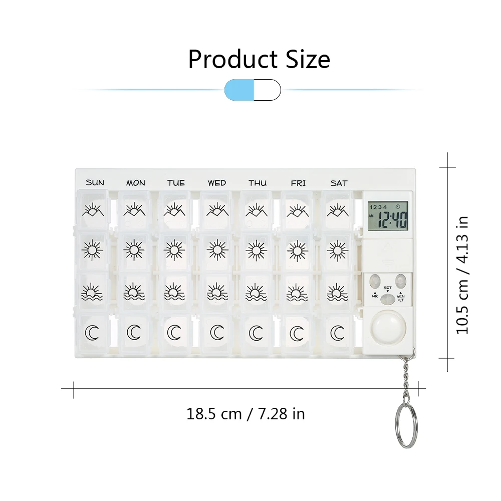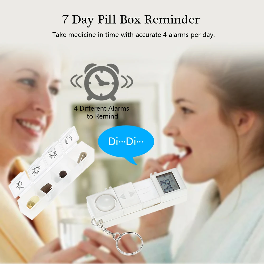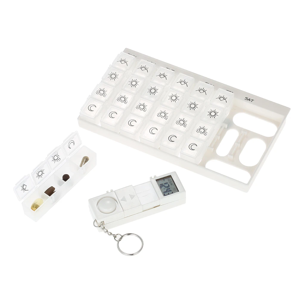 7 Days Tablets Pill Box Medicine Pill Case Organizer LED Timer Reminder Weekly Storage Pill Dispenser Alarm Clock 28 Grids