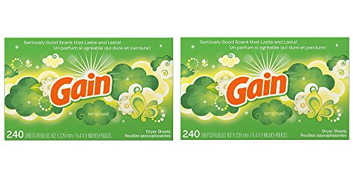 Binding : Kitchen Product Description Fluff and tumble your way to fewer wrinkles, more softness and less static cling with Gain Original Scent Dryer Sheets. Gain Dryer Sheets, Original Scent: Warnings: Warning Text: Gain is safe for all washables but is not for use on childrens sleepwear or other garments labeled as flame resistant, as it may reduce flame resistance. Keep out of reach of toddlers and pets to avoid accidental ingestion. Ingredients: Ingredients: Cationic Softeners, Perfume Directions: Instructions: . Usage: Add a new sheet on top of clothes at start of drying. Do not re-use. For Best Results: For large loads use an extra sheet. Use low heat setting for synthetics. If spotting occurs at high heat setting, rub spot with a bar soap and rewash in warm water. 0