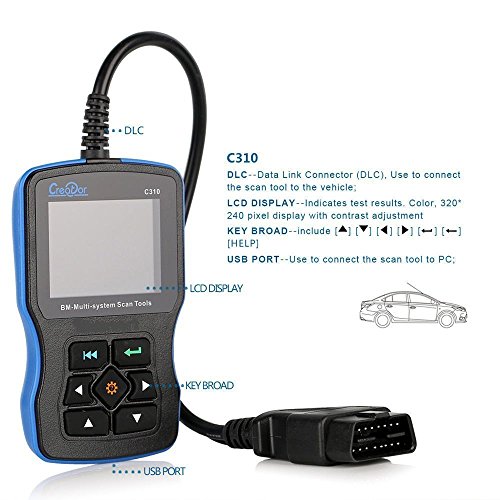 -. Feature : Creator C310+ support BMW vehicle for 1 series, 3 series, 5 series, 6 series, 7 series, X series, Z series and MINI ect. The system include engine, auto transmission, ABS, air bag, air condition, instrument etc. / All-in-One BMW Diagnostic Tool: multi-function code reader, including read and erase trouble codes,turn off abs, airbag, transmission and all other systematic warning light, living data, clear adaptation, vehicle information, datastream graph display, service reset. / Perfect LCD Display: 2.8'' color screen, 320*240 pixel display. Your can read the codes clearly, also there is a 'Help' button to explain the meaning of the codes. / Unique Design: Handheld size with radian back, perfect fit the hand when hold it. Reasonable button set, select the high quality to improve the feeling of touch, make it easy to operate. / No Worries About Upgrade: this OBD scanner is come with upgrade disk, if the disk is missing in the future, please don't worry, we will provide the website for free on-line upgrade. Newest V7.4 released from official website to cover more older bmw vehicles, fitting for almost all BMW series vehicles.