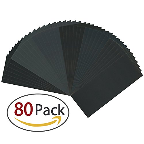 240 to 3000 Grit Sandpaper Assortment, Dry/ Wet, 9 x 3.6 Inch, 80 Pieces,Sand Paper for Automotive Sanding, Wood Furniture Finishing and Wood Turning Finishing by Homder