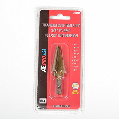 ATE Pro. USA 90042 Step Drill Bit, Quick-Change, 1/4" Shank, 1/16" Increments, 1/4 to 3/4"