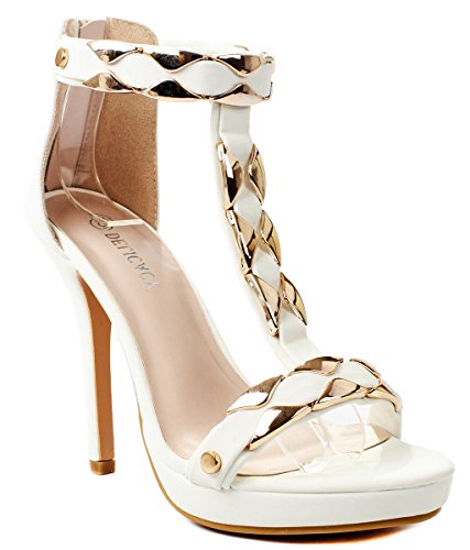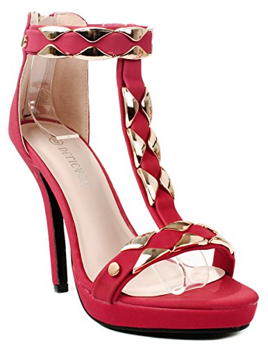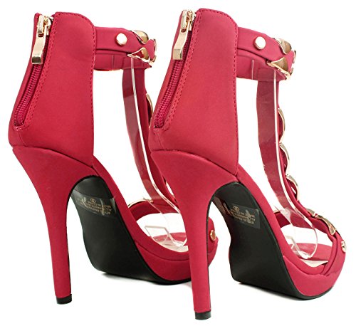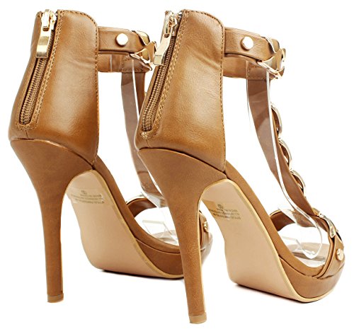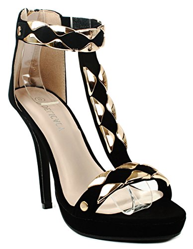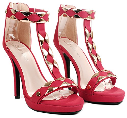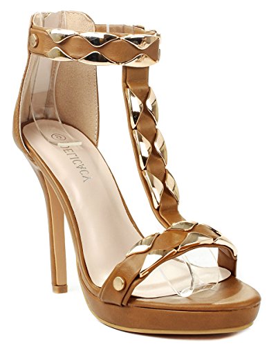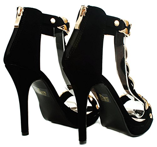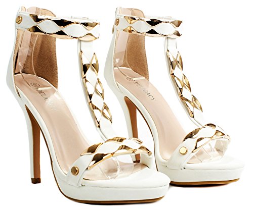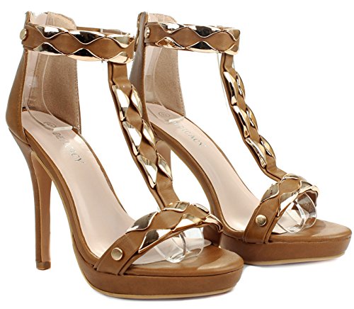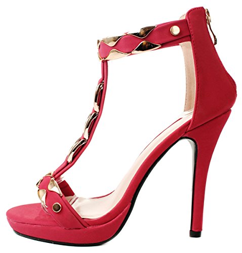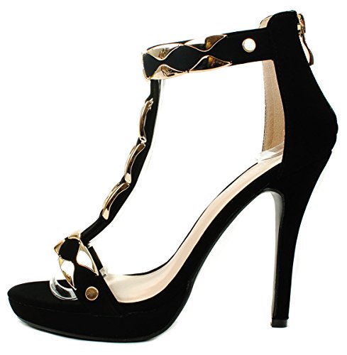 Product Description Add extra sophistication to your look with these sexy high heel sandals. Featuring an open toe, a T-strap with decorative gold plating, and an approximate 4.25" high wedge heel with a 0.35" platform for extra comfort. Finished with a slightly cushioned insole for extra comfort, and a rear zipper closure for easy on/off. 0
