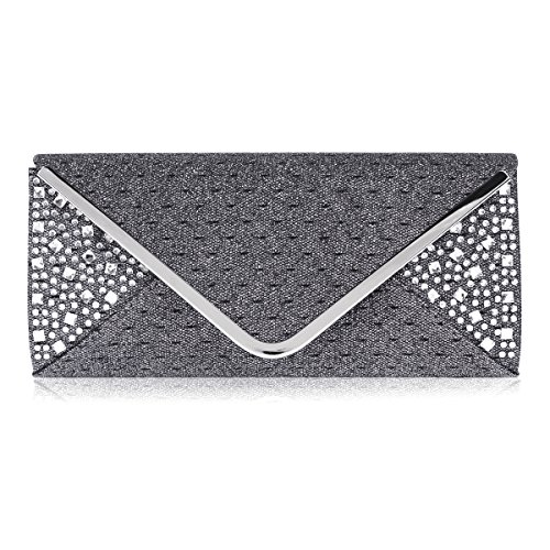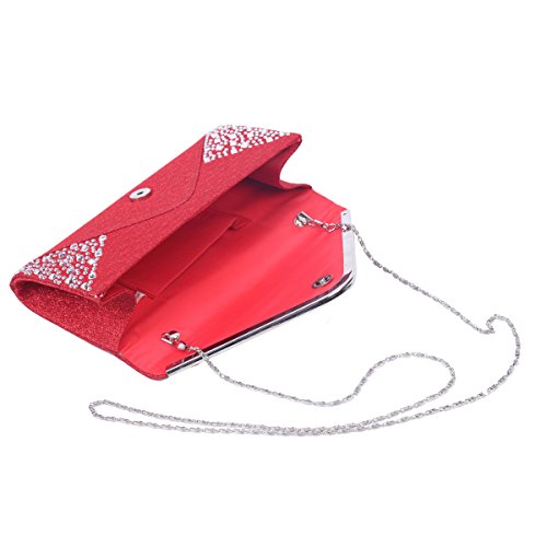 The glitter women evening bag made of gauze paillette satin with a triangle metal frame cover. Front are crystals and rhinestones decoration with a magnetic closure.The sparkling appearance make you more charming, distinguished and the focus of an evening party ,wedding party ,day clubs,cocktail party or prom .The interior offers just enough room for your most important items such as cellphone ,lipstick,invatation and other important receipt ,interior also provides a slot pocket for some tiny items such as earings.A detachable silver chain available,which supplies versatile carrying options as a hand held clutch, tote, handbag, shoulder bag, or messenger bag.Feature