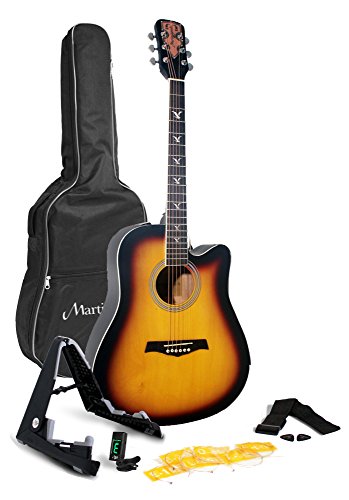 Studio : Martin Smith Publisher : Martin Smith Binding : Electronics Product Description The Martin Smith w-700 guitar has been beautifully crafted to offer the player a deep rich tone from it's large 41" hollow dreadnought body. Its distinctive cutaway gives the guitar its popular stylish look as well as allowing the player to reach higher notes with ease. The Martin Smith w-700 neck has been designed with a low action for a smooth and easy playing experience with precise intonation. Finished in a stunning Matt effect, the w-700 series stands out with it's quality binding, pearloid inlays and Embossed headstock featuring fully geared chrome machine heads making the Martin Smith premium guitar a truly beautiful instrument to hold and play for all guitarists from beginners to enthusiasts. Included with the guitar is a padded dreadnought guitar case, ensuring the guitar is protected in storage and transport as well as spare strings, an adjustable guitar strap, guitar stand and Plectrums. 0