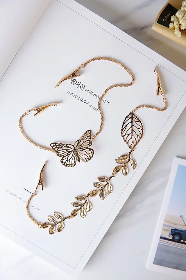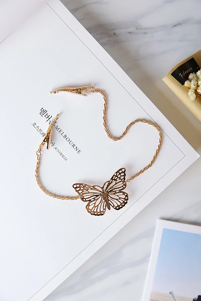 葉の鎖の長さは約30cm、蝶の鎖の長さは約30cm、蝶5x3.4cmとなっております。