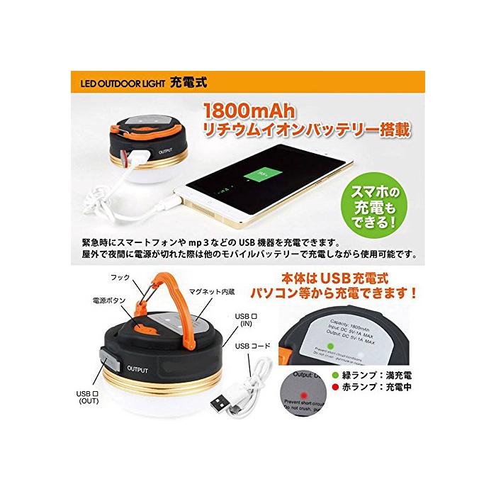 방수 성능이 갖추고 있어,아웃도어나 캠프,또한 재해시 등 폭넓게 사용 할 수 있는 다기능으로,실용성의 높은 휴대식 충전식LED랜턴입니다.