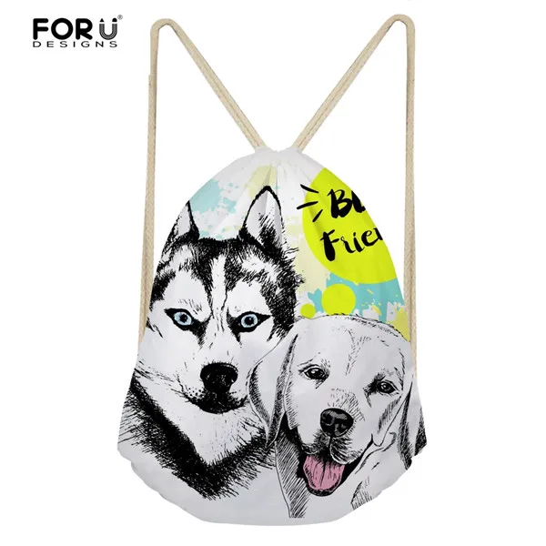 Type3:Cute Hand-print Husky/Puppy Dog Printied Men String Shoulder Bags
