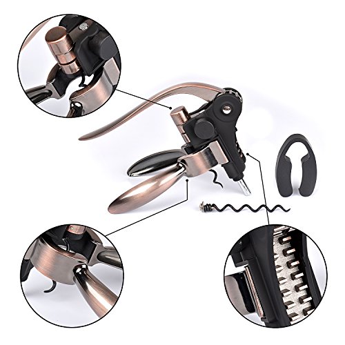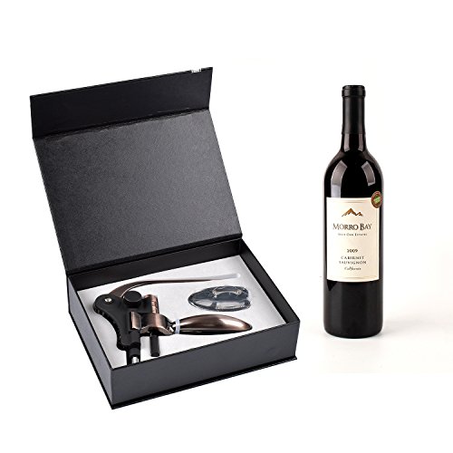 High-Quality And Exquisite Design: -Sometime you may have trouble screwing the bottle of wine when having a date or celebrating an anniversary,it requires brute muscle to pull the cork out. But the design of this rabbit wine opener is based on classic lever and grip is accordance with human engineering, which will help you open the bottle easily. -It's perfect for gifting or having your own wine collection,3-piece wine tool set with nicely packing leave you an exquisite impression. How to use? 1.Use foil cutter remove the bottle foil seal 2.Swing lever to full open position and put the opener over the bottle 3.Grip the bottom neck firmly with the grip handles and slowly bring the lever up and return to closed position. 4.Keep a firm grip on the bottle neck with the handles and slowly lift the lever back to the open position. 5.Take the cork out of the bottle and repeat step 3 step 4 then the cork will be released from worm. 6.You can enjoy your wine or open another bottle. Descripiton: Weight: 26.8oz Material: zinc alloy with plating stainless steel and ABS material Size: 8.9x6.5x2.2cm brown PVC Features: Easily removes stubborn or fragile corks 0 |