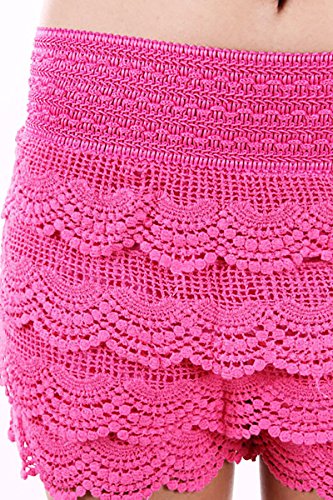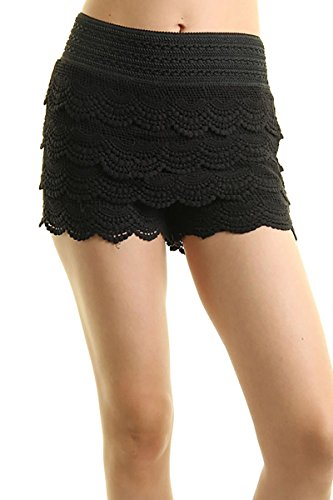 -. Title : TheLovely Layered Crochet Lace Tiered Scallop Hem Waistband Mini Short