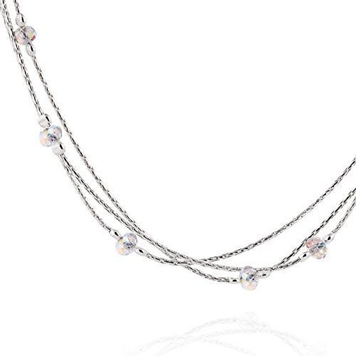 -. Feature : Dazzling Triple Strand Necklace with Original Swarovski Elements Crystals Made by Hand in Our Jewelry Design Studio / Sterling Silver Three Strand Necklace with 4 mm Swarovski AB Crystals / A Faboulous Gift for Your Mom, Spouse, Girlfriend, Daughter, Sister or co-worker / Elegant and Chic Great for the Professional Women / 18" chain + 4" Extender all in 925 Silver for adjustable length up to 22"