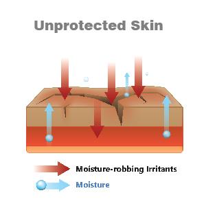 A shielding lotion bonds with the outermost layer of skin, locking in natural moisture and oils. Natural moisture and oil loss is the leading cause of dry skin and irritated skin.