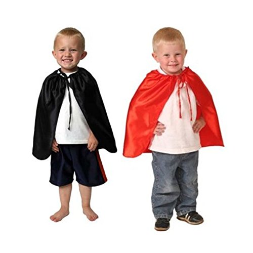 -. Binding : Toy -. Brand : Making Believe -. Color : Red / Black -. Department : Girls -. EAN : 9790000011021 -. Feature : Fun party favors for boys and girls / Capes can be embellished and decorated / Adjustable tie at neck, NOTE THAT DUE TO SAFETY STANDARDS, THIS CAPE HAS A HOOK AND LOOK NECK CLOSURE, RATHER THAN A TIE. / Satin fabric with serged edge / Lot includes 12 capes = 6 red and 6 black -. Label : Making Believe -. Manufacturer : Making Believe -. MPN : 4520878 -. PartNumber : 4520878 -. ProductGroup : Toy -. ProductTypeName : TOYS_AND_GAMES -. Publisher : Making Believe -. Size : Small (2/4) -. Studio : Making Believe -. Title : Dozen 20" Red and Black Satin Superhero Capes
