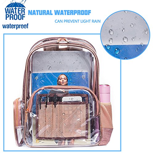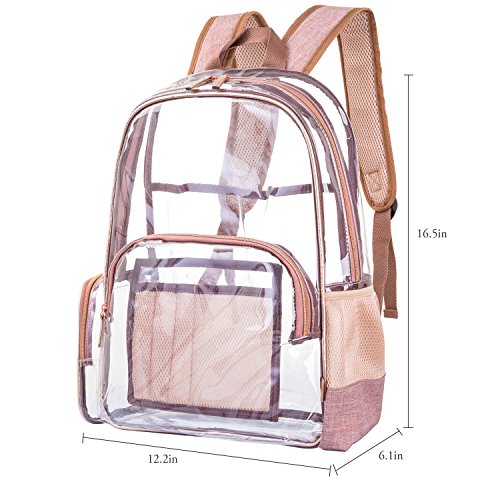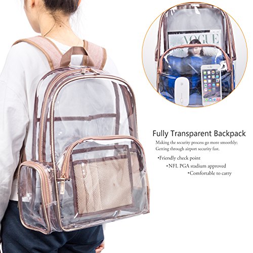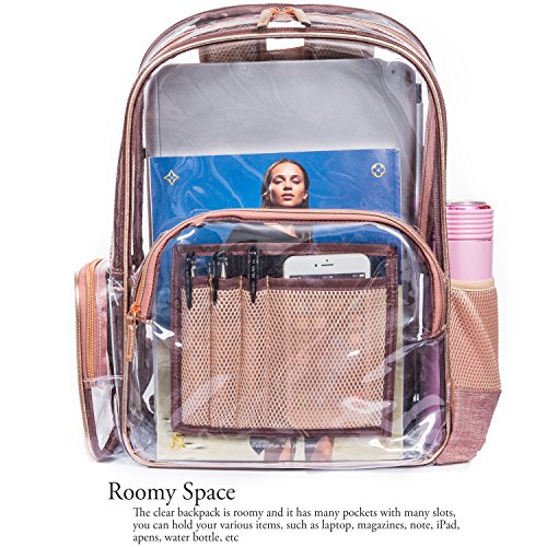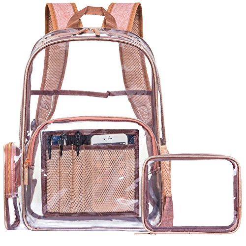 -. Title : NiceEbag Clear Backpack with Cosmetic Bag & Case, Clear Transparent PVC Multi-pockets School Backpack Outdoor Bookbag Travel Makeup Quart Luggage Pouch Organizer Fit 15.6 Inch Laptop (Rose Gold)