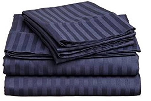 Deluxe 4pc Striped KING Bed Sheets Set, NAVY BLUE