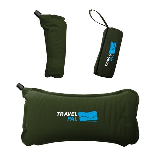 Travel Pal Self Inflating Adjustable Lumbar Pillow Back Rest Support Green