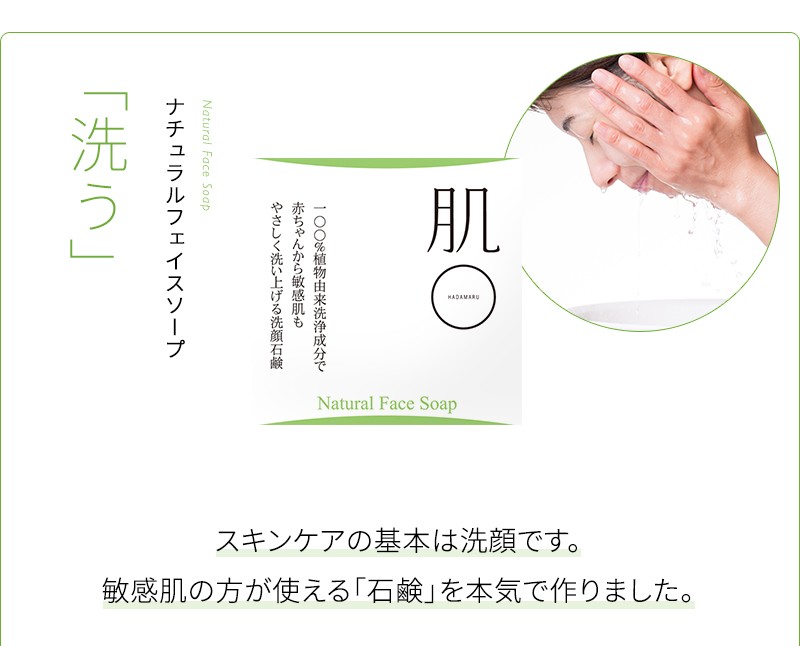 ・100%植物由来成分で敏感肌もやさしく洗い上げる洗顔石鹸。