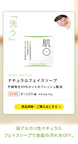 低刺激洗顔石鹸と低刺激ピーリングで古い角質や汚れを取り除くことで