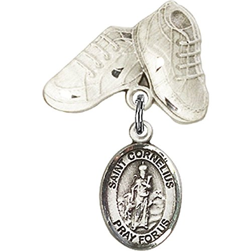 -. Title : Sterling Silver Baby Badge with St. Cornelius Charm and Baby Boots Pin 1 X 5/8 inches