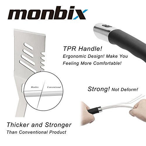 - Premium Quality Stainless Steel and Heavy Duty - The premium and thickened stainless steel with long non-slip TPR grips make these tools won’t rust, crack or deform, and dishwasher-safe, these can help you meet all grilling needs.
