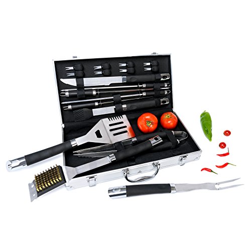 Monbix GL-70719 BBQ Grill Accessories, 19 Piece, Stainless Steel Utensils with TPR Grips, Heavy Duty Grill Set with Aluminum Storage Case