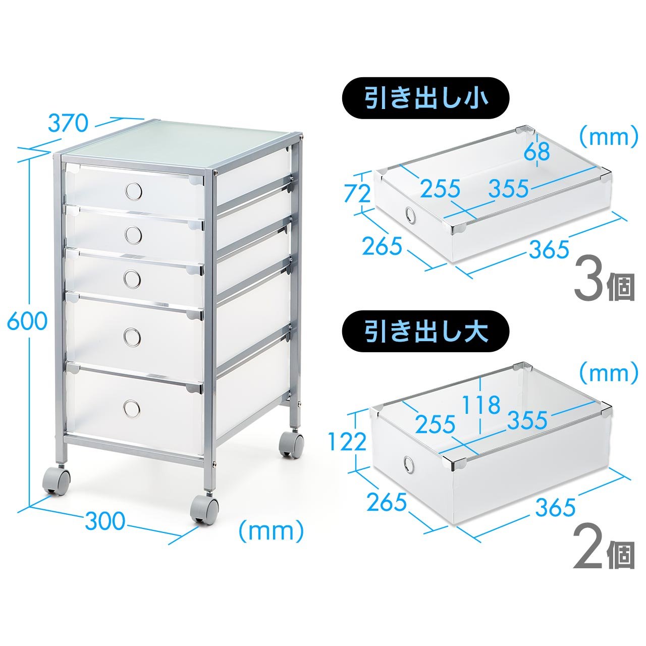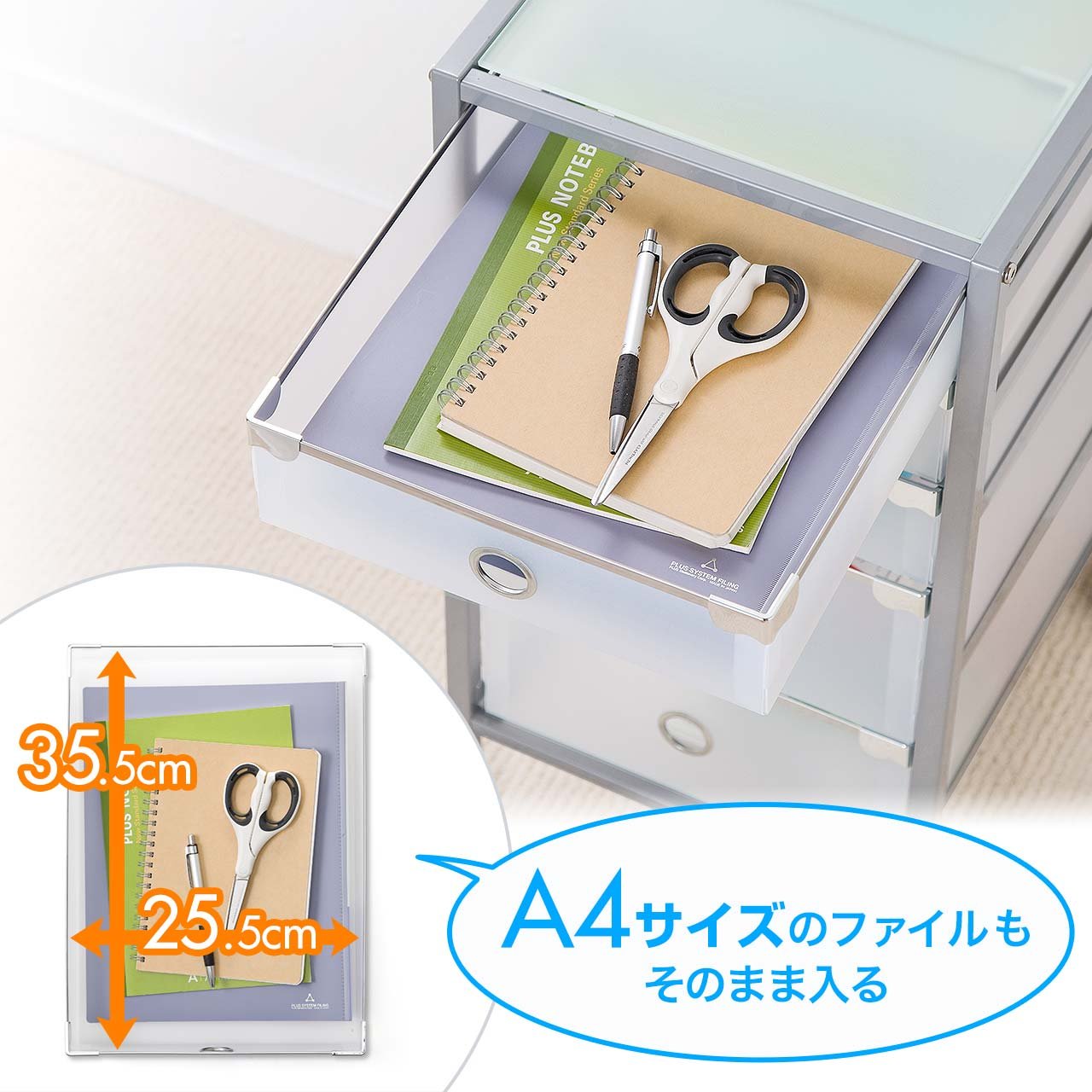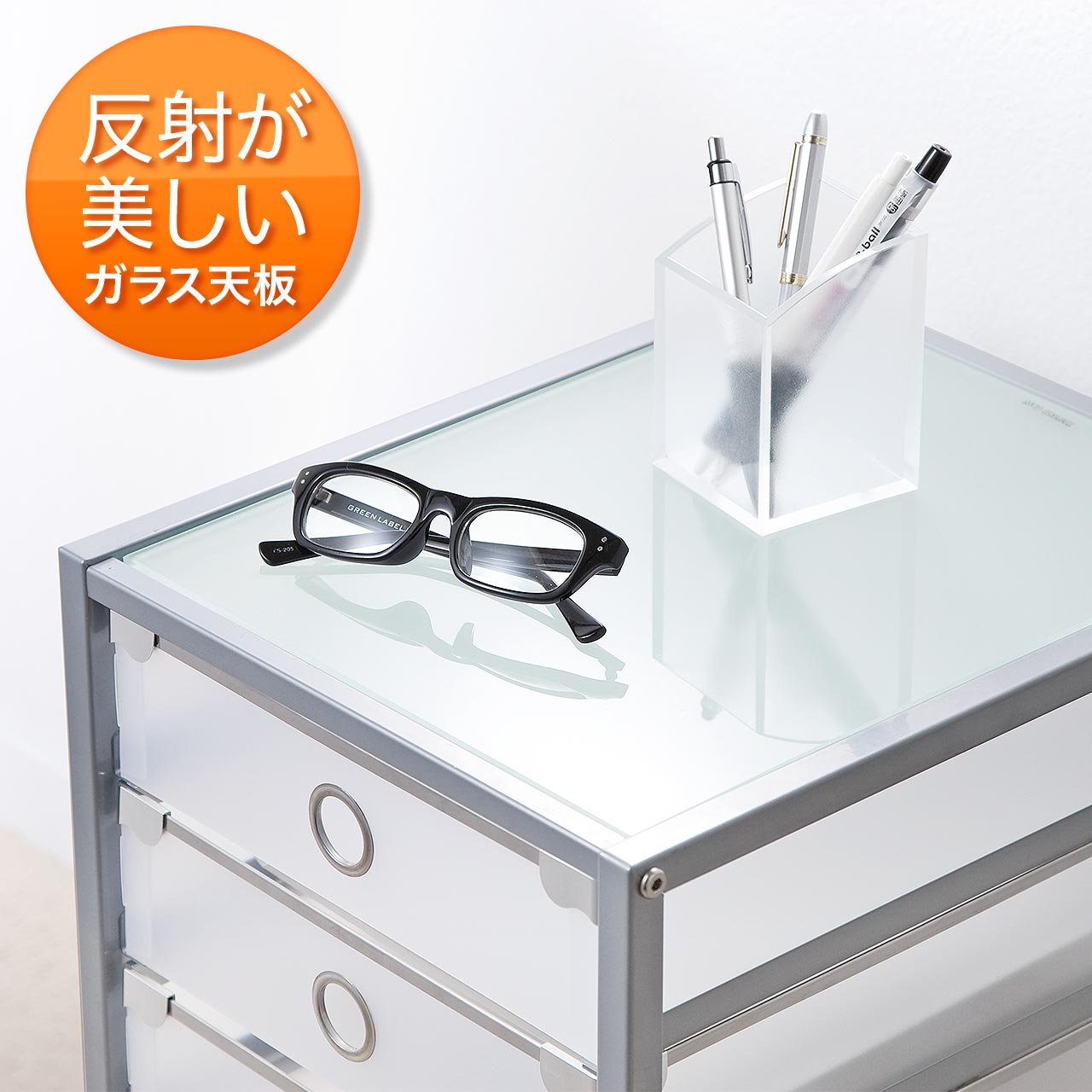 Sanwa A4 file direct cabinet five-stage glass top plate caster housing side wagon 100-SNW002
