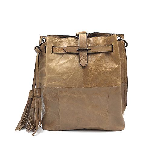 -. Title : Sheli New Tan Women Leather Backpack Crossbody Purse Distress Boho Bucket Travel Bag