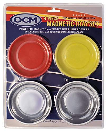 OCM 4 Pack Magnetic Parts Tray Set, Includes 2 Stainless 4 1/4-inch Diameter Bowls, 2 Impact-Resistant Color Coded Bowls