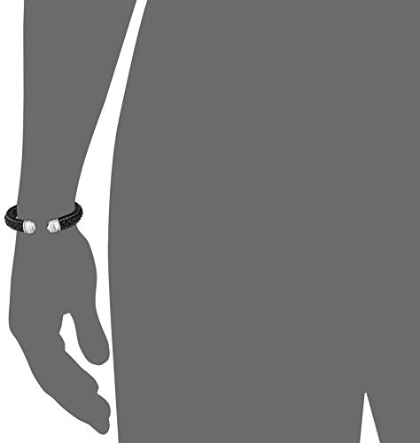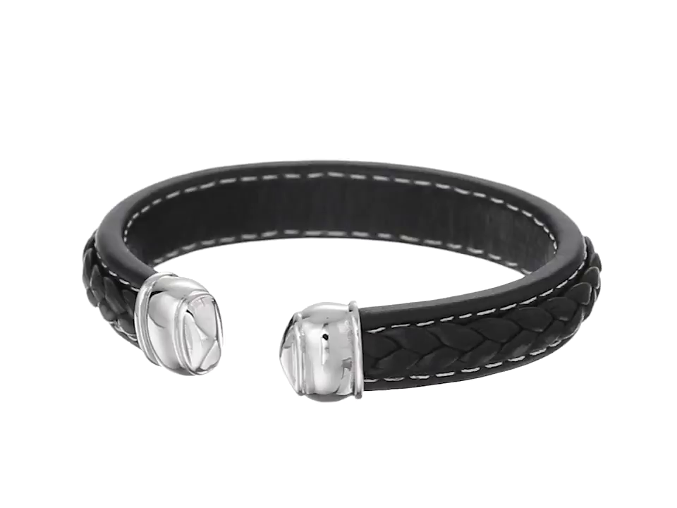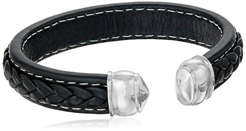 Men's Stainless Steel and Black Leather Cuff Bracelet